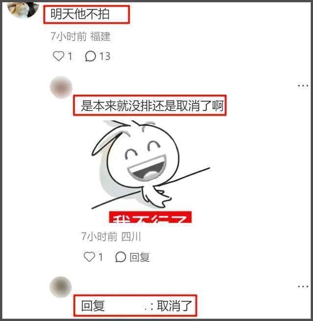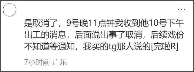 而剧方似乎也反应迅速,不止一个网友爆料田栩宁最新一天的通告被取消了。还有粉丝透露本来定的是10号下午有他的拍摄戏份,但前一天晚上又临时通知“出事了”取消,后续的戏份不确定只能等通知。