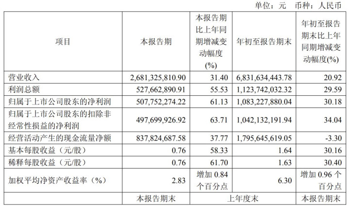 今年前三季度,兆易创新实现营收68.32亿元,同比增长20.92%,实现净利润10.83亿元,同比增长30.82%;其中三季度单季度实现营收26.81亿元,同比增长31.4%;实现净利润5.078亿元,同比增长61.13%。
